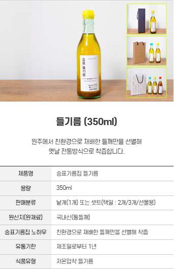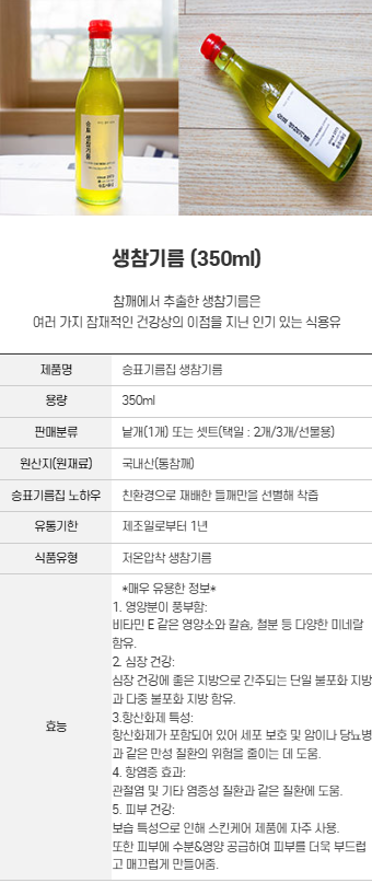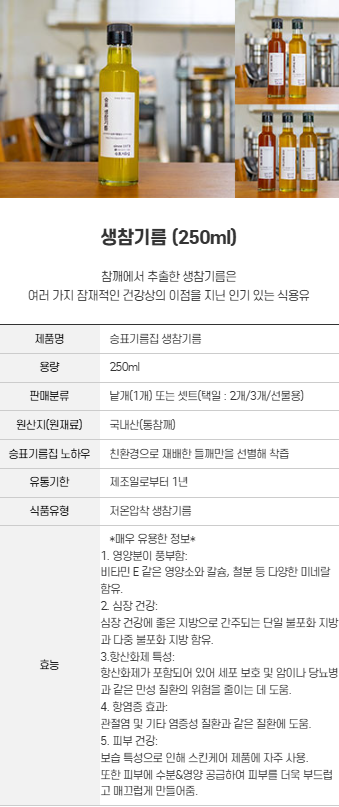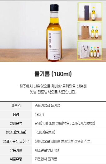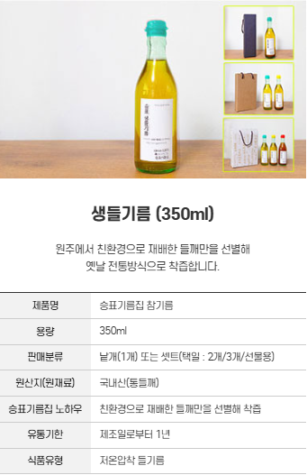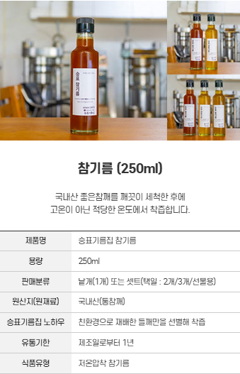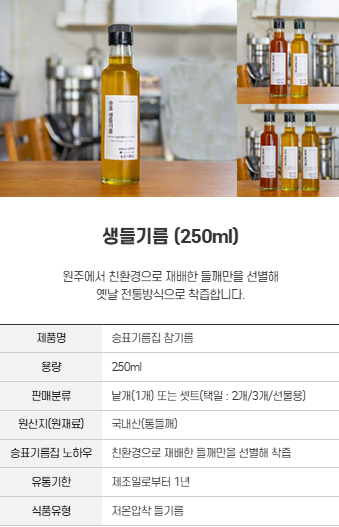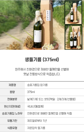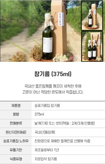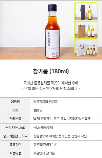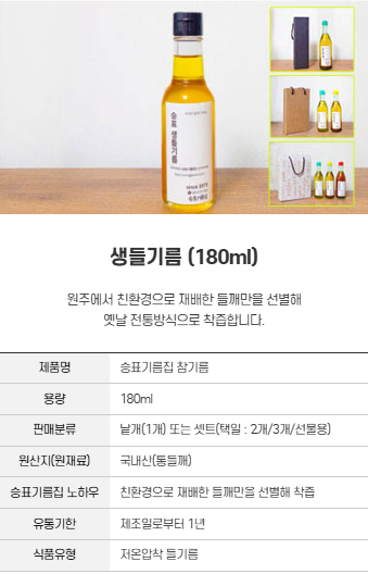'참기름 & 들기름 & 생들기름'을 안내해드립니다.